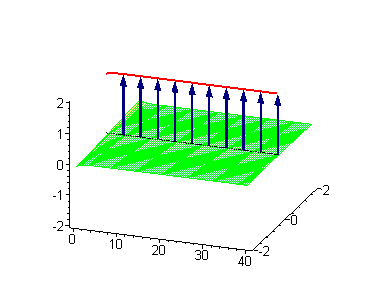 Las soluciones de un solitón pueden visualizarse usando el modelo de sine-Gordon de goma elástica introducido por Julio Rubinstein en 1970.[7] Aquí se interpreta un giro en el sentido de las agujas del reloj de la goma elástica como un pliegue con carga topológica . El giro alternativo en el sentido contrario a las agujas del reloj con carga topológica será un antipliegue.