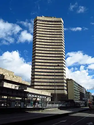 ![]() El Edificio Colseguros desde Carrera Décima con la calle 18 | ||