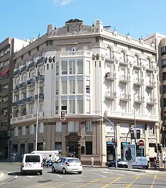 Estilísticamente combina elementos casticistas con art déco valenciano,[1] realzándose la composición de la fachada con un mirador central de gran tamaño, además de con decoración art déco y elementos geométricos y estilizados.[2] Fue el primer edificio de Alicante en contar con un sótano accesible para los vehículos.[2]