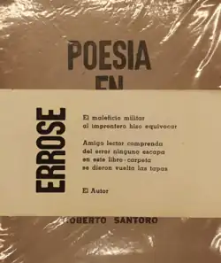 Esta última publicación presentó dos características paratextuales curiosas. La primera fue una faja con un texto que Santoro decidió agregar debido a que las tapas se habían impreso al revés: "Errose: El maleficio militar / al imprentero hizo equivocar / Amigo lector comprenda / del error ninguno escapa / en este libro carpeta / se dieron vuelta las tapas. El Autor".