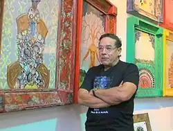 ![]() Retrato del artista frente a algunas de sus obras. | ||