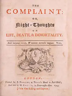 Su obra más conocida es el poema Night Thoughts (1742-1745), título traducido al español como Las Noches, Pensamientos nocturnos o, simplemente, Noches. Esta obra está cargada de meditaciones fúnebres.
