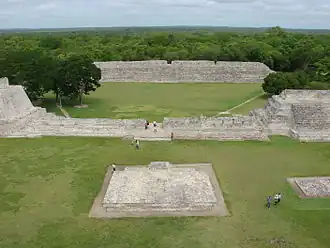 - Plaza principal. Amplio espacio cuadrangular, donde se asienta el mayor número de construcciones monumentales del sitio. En sus sectores norte y sur existen dos sacbés o calzadas que fueron utilizadas para la circulación interna. Los edificios incluyen la plataforma de los cuchillos y el patio de los embajadores que está delimitado al poniente por 2 edificios, cada uno con cuatro columnas que corresponden a los años 1000-1200 d. C.