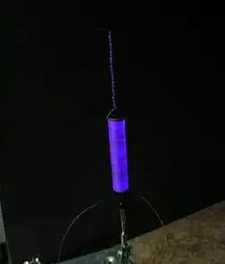 En el curso de las investigaciones sobre la electroestática en el siglo XVII, se observó por primera vez el mismo fenómeno en laboratorio. Por lo general, también se le daba el nombre de corona. Ahora normalmente se utiliza el término de efecto corona para describir este fenómeno de descarga de gas eléctrico externo.