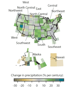 Con eventos de lluvia menos consistentes y más intensos, la disponibilidad de agua tendrá un impacto directo en la humedad del suelo en un área. Una disminución de la humedad del suelo tendrá impactos negativos en el crecimiento de las plantas, cambiando la dinámica del ecosistema en su conjunto. Las plantas dependen no solo de la lluvia total durante la temporada de crecimiento, sino también de la intensidad y magnitud de cada evento de lluvia.[19]