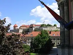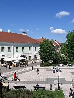 - El Lyceum (Colegio Eszterházy), diseñado por József Gerl y Jakab Fellner y construido en 1765-85, es un magnífico ejemplo del estilo Zopf comedido. Hay tres pinturas destacables del siglo XVIII al fresco situadas en el techo, de las cuales solo está accesible al público la situada en la biblioteca. Pintada por el artista vienés Johann Lukas Kracker en 1778, recrea el Concilio de Trento (1545-1563), que inició la Contrarreforma. Entre las figuras de los reformistas se encuentran Lutero y Zwinglio, cuyos libros "heréticos" se lanzan a los relámpagos. La bellamente amueblada biblioteca abrió en 1793. Hay una "camera obscura" o periscopio en la parte superior del edificio, que proyecta imágenes de la ciudad sobre una mesa.