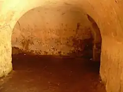 Estructura subterránea de cuatro brazos de diferente largura y que forma un túnel, una pequeña parte está excavada en la roca y el resto con cemento cubierta de bóveda y enlucido. En la parte interior de los brazos que componen el criptopórtico a distancia regular hay unas aperturas que se derraman hacia abajo. Dos pares de ingresos, modificados a lo largo de los siglos se abren en los extremos del lado mayor. Al no haber estructuras sobrestantes se piensa que pudo ser utilizado como depósito de cereales (horreum)