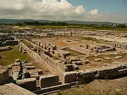 En la misma época se realiza la disposición de gusto helenístico de la zona a los pies de la acrópolis se puede reconocer la disposición de una zona porticada que se asomaba a una plaza irregular (ágora).