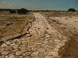 El urbanismo de la ciudad romana se articula en insulae irregulares delimitadas por la vía Trajana y por calles secundarias no asfaltadas. De casas y talleres se conservan solamente los cimientos, en el interior de estas estructuras es común encontrar canales de riego, cisternas y piscinas para recoger y usar el agua de los pozos o para acceder al agua de la capa freática.