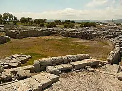 De planta circular con un pasillo de acceso (praefurnium) se utilizaba seguramente para la cocción de grandes recipientes de arcilla. Resulta construida encima de una tumba de fosa que contiene la inscripción en idioma mesapio TABAPA (sacerdotisa) en una de las losas que la cubren.