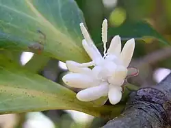 Las flores son de color crema, se dan en racimos y tienen un olor parecido a anís.