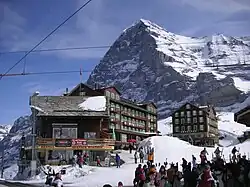 El Eiger es una montaña de 3970 m de altura de los Alpes berneses de Suiza, que forma parte del conjunto Jungfrau-Aletsch-Bietschhorn declarado Patrimonio de la Humanidad por la Unesco en 2001.[1] Es el pico más oriental de la cadena que se extiende cruzando el Mönch (4099 m) y la Jungfrau (4158 m). La ladera septentrional de la montaña se alza alrededor de 3 km sobre Grindelwald y otros valles habitados del Oberland bernés, y la cara meridional queda frente a la región del Jungfrau-Aletsch, cubierta por algunos de los glaciares más grandes de los Alpes.