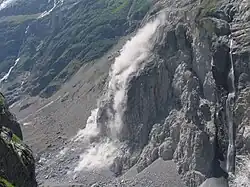 - ↑ The Associated Press (14 de julio de 2008). «Massive chunk falls from Swiss mountain». MSNBC. Consultado el 26 de octubre de 2008.