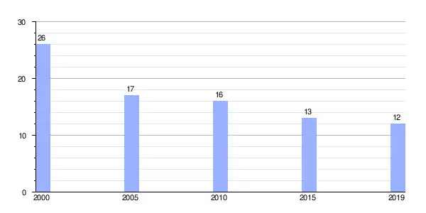 | Gráfica de evolución demográfica de Eiriz entre 2000 y 2019 |