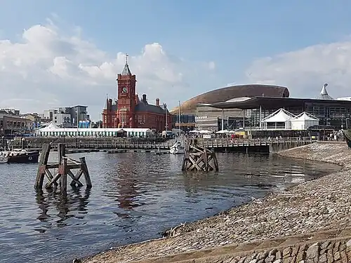 - ↑ a b Crump, Eryl (25 de abril de 2016). «National Eisteddfod consider staging festival with 'no fence' in Cardiff Bay». North Wales Live (en inglés). Consultado el 22 de abril de 2024.