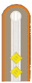 | Oberst (Coronel) | Oberstleutnant (Teniente coronel) | Mayor | Hauptmann (Capitán) | Oberleutnant (Teniente primero) | Leutnant (Teniente) | Unterleutnant (Subteniente/Teniente segundo) |