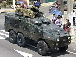 Vehículo de combate de infantería | 3 | Armado con dos cañones HS 404 de 20 mm en una torreta de 360° y una ametralladora M60 o FN MAG de 7,62 mm o una M2 Browning de 12,7 x 99 mm como arma secundaria, es utilizado como vehículo caza tanques, vehículo antiaéreo y transporte blindado de personal. | |||||