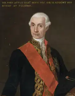 Acton llevó a cabo una serie de reformas del aparato militar del reino que, sin embargo, en el momento de la invasión napoleónica del Reino, aún no se habían terminado por completo. En cuanto al ejército, el almirante trató de mejorar la preparación de los agentes con la fundación de la Academia Militar de Nunziatella y aumentar los intercambios educativos con los países extranjeros especialmente con Prusia y Francia. Acton introdujo algunas innovaciones útiles —(favoreció el conocimiento topográfico financiando a Rizzi Zannoni, entre otras cosas,[9] construyó nuevas carreteras, etc.—; las fuerzas armadas, tan renovadas, más que dignamente realizó su prueba de fuego en el sitio de Tolón, en el marco de la primera Coalición con Inglaterra contra la Francia revolucionaria. Seis mil soldados napolitanos participaron en la defensa de la ciudad y fueron los últimos en volver a embarcarse. La expedición regresó a su patria el 2 de febrero de 1794, habiendo tenido alrededor de 200 caídos y 400 heridos. En el período 1796-1798 se recuerda en particular el excelente rendimiento dada por la división de caballería napolitana, formada por los regimientos King, Queen, Prince y Napoli, en las operaciones de la campaña italiana contra los franceses. Los caballeros napolitanos, comandados por el brigadier Ruitz, recibieron elogios tanto de los aliados austriacos como de los enemigos franceses —incluido el propio Napoleón Bonaparte—.[6]