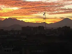 El volcán Matlalcueye o Malinche sobre la ciudad de Tlaxcala