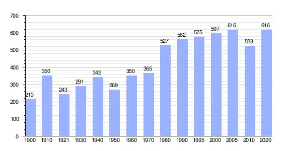 En 2020 registró una población de 616 personas, lo que corresponde al 5.97 % de la población municipal.[12] De los cuales 303 son hombres y 341 son mujeres.[12] Tiene 175 viviendas particulares habitadas.[12]