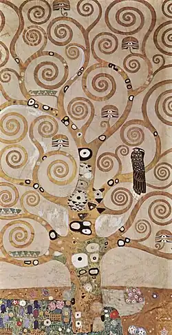 - ↑ Werkzeichnung für die Ausführung eines Mosaikfries für den Speisesaal des Palais Stoclet in Brüssel: Teil 4, Lebensbaum. Sammlung. Consultado el 13 de julio de 2023.