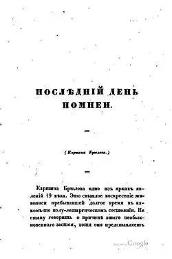 - N. Gogol (Н. В. Гоголь) (1952). Издательство Академии наук СССР, ed. Le Dernier Jour de Pompéï. (en ruso). Moscú y Leningrado. pp. 107—114.