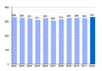 | Gráfica de evolución demográfica de El Almendral entre 2002 y 2020 |