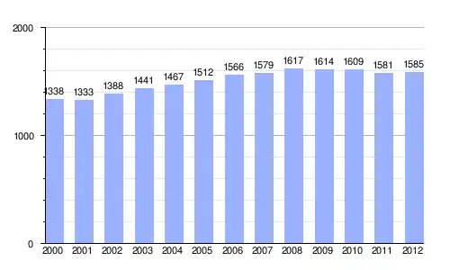 | Gráfica de evolución demográfica de El Arrecife entre 2000 y 2012 |