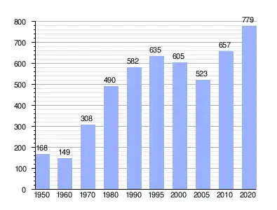 Población de los censos y conteos del Instituto Nacional de Estadística y Geografía (INEGI) de 1950 a 2010.[6] |