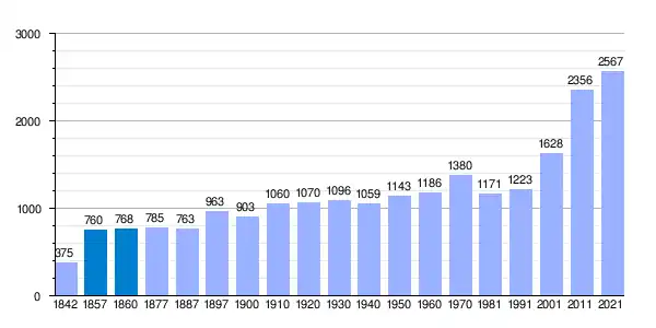 | Gráfica de evolución demográfica de El Burgo de Ebro[5] entre 1842 y 2021 |