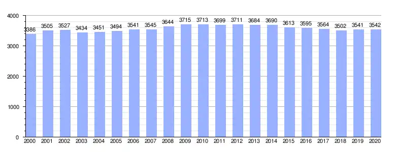Población de derecho (2000-2019) según los censos de población del INE a 1 de enero de cada año.[3]