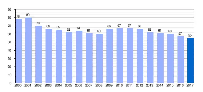 | Gráfica de evolución demográfica de Campo de Ledesma[8] entre 2000 y 2017 |