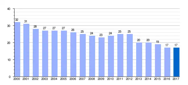 | Gráfica de evolución demográfica de Campo de Ledesma (núcleo urbano)[8] entre 2000 y 2017 |