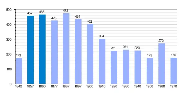 | Gráfica de evolución demográfica de EL Campo de Ledesma[6] entre 1842 y 1970 |