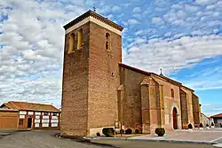 En la plaza, hoy pavimentada, se alza la iglesia, dedicada a la Asunción de Nuestra Señora, que la da prestancia y centralidad. Por su altura y sobre todo por su torre sobresale y puede divisarse desde toda la comarca.