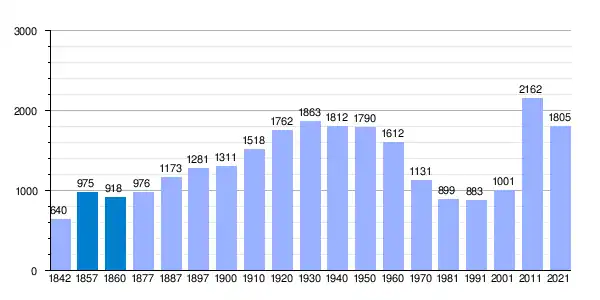 | Gráfica de evolución demográfica de El Casar de Escalona[3] entre 1842 y 2021 |