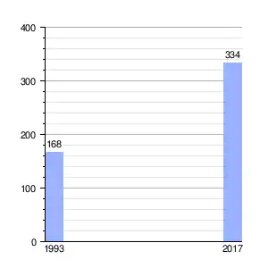 | Gráfica de evolución demográfica de El Ceibo entre 1993 y 2017 |