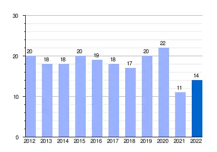 | Gráfica de evolución demográfica de El Cerval entre 2012 y 2022 |