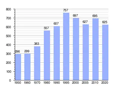 | Gráfica de evolución demográfica de El Dadhó entre 1950 y 2020 |