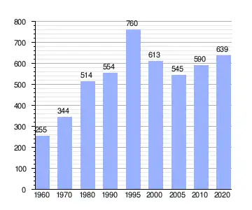 | Gráfica de evolución demográfica de El Dextho entre 1960 y 2020 |