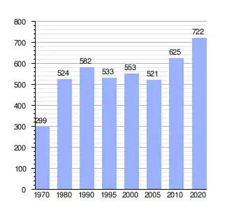 | Gráfica de evolución demográfica de El Fresno entre 1970 y 2020 |
