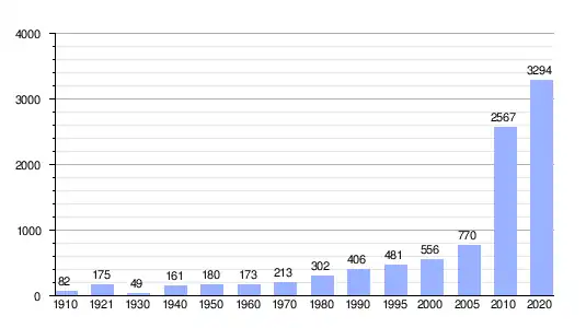 | Gráfica de evolución demográfica de El Huixmí entre 1910 y 2020 |