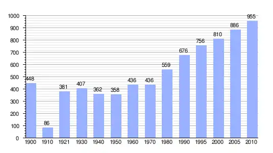 Población de los censos y conteos del Instituto Nacional de Estadística y Geografía (INEGI) de 1900 a 2010.[7] |