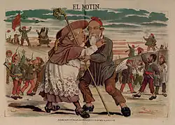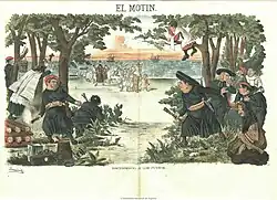 El Motín fue una publicación española de finales del siglo XIX y principios del siglo XX, que tuvo una larga vida para la época: desde su fundación el 10 de abril de 1881 hasta el 6 de noviembre de 1926. Fue un semanario satírico, republicano y anticlerical, que al principio sólo constaba de cuatro páginas, que incluían un comentario de actualidad, un poema y algunas noticias breves, más un grabado en las páginas centrales. Entre sus objetivos se encontraban: la crítica a los conservadores, la defensa de la unidad del partido republicano y la lucha contra el poder del clero. Su fundador y alma del periódico fue José Nakens, hasta el punto de que la historia de la publicación está estrechamente unida su vida. Por otro lado, destacaron en El Motín los dibujos y caricaturas de "Demócrito" (el seudónimo de Eduardo Sojo).