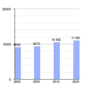 En 2020 el 49.1% de la población (5428 personas) eran hombres y el 50.9% (5633 personas) eran mujeres. El 63.7% de la población, (7045 personas), tenía edades comprendidas entre los 15 y los 64 años.[5]