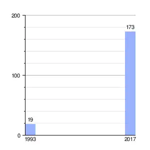 | Gráfica de evolución demográfica de El Palmo entre 1993 y 2017 |
