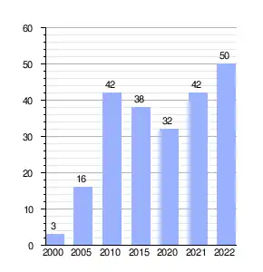 Población de derecho (2000-2022) según los censos de población del INE a 1 de enero de cada año.[1] |
