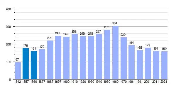 | Gráfica de evolución demográfica de El Pino de Tormes[5] entre 1842 y 2021 |