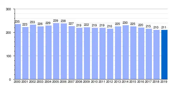 | Gráfica de evolución demográfica de El Porrosillo[1] entre 2000 y 2019 |