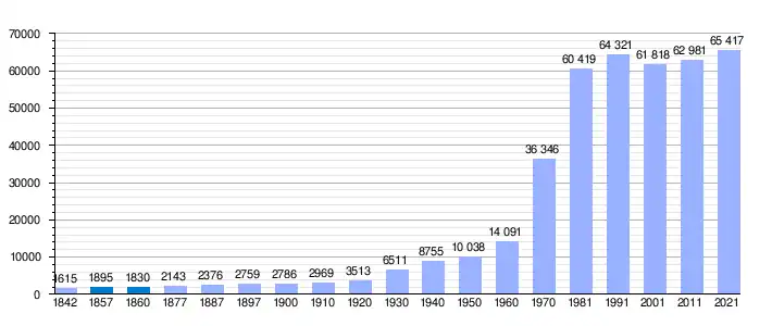 | Gráfica de evolución demográfica de El Prat de Llobregat[8] entre 1842 y 2021 |